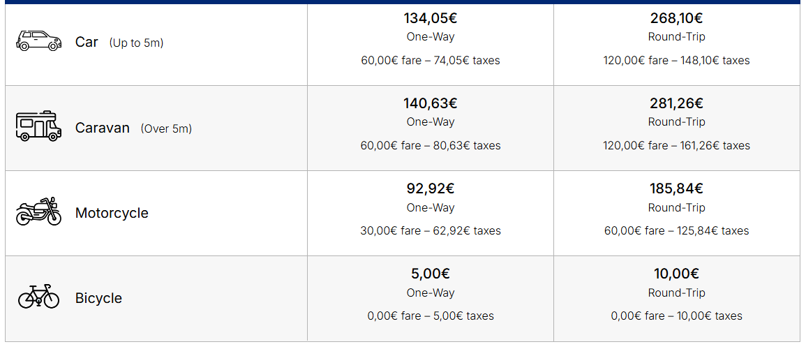 Ticket prices for the Greece — Cyprus ferry for vehicles in 2025