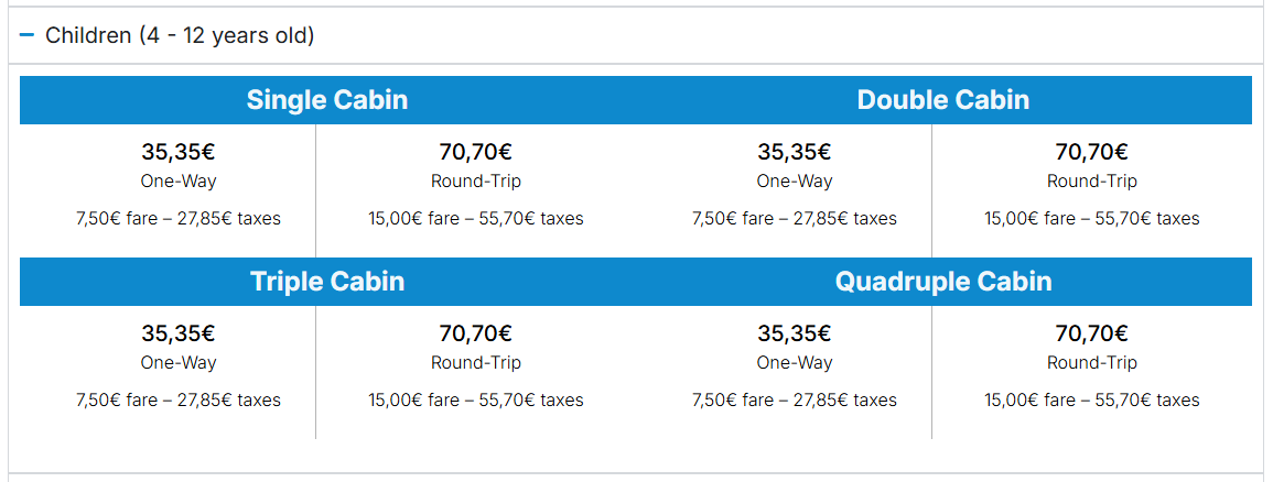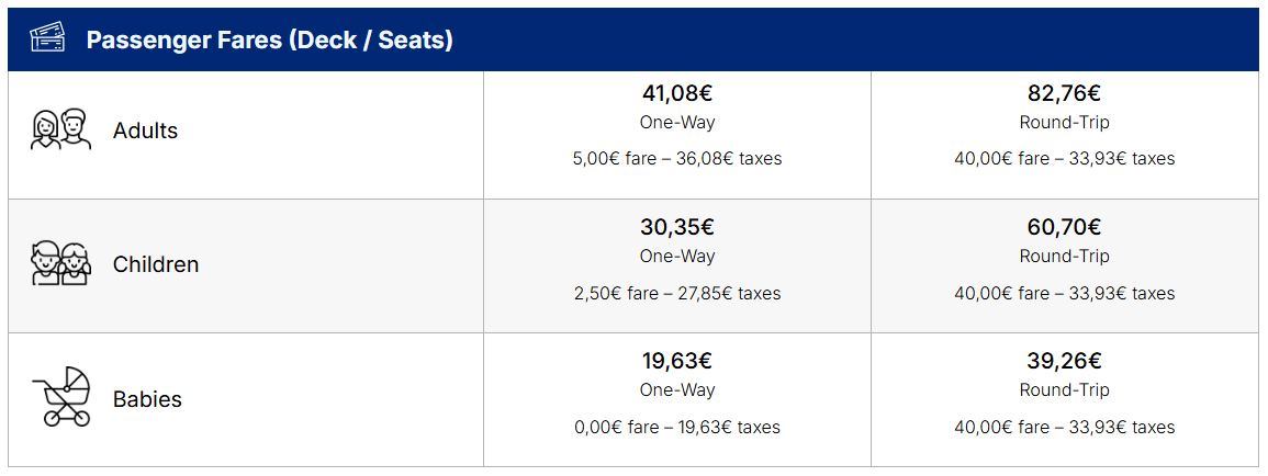 Ticket prices for the Greece — Cyprus ferry for seating in 2025