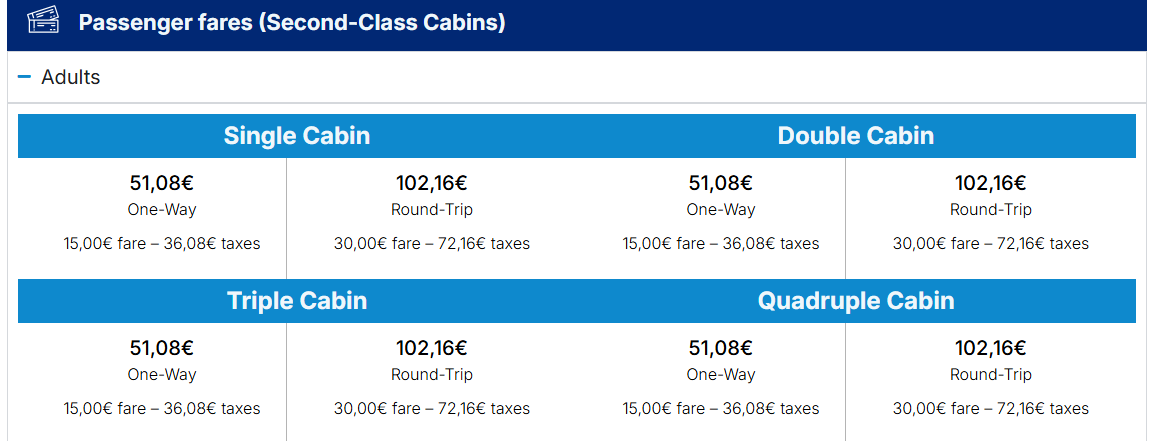 Ticket prices for the Greece — Cyprus ferry for second class in 2025
